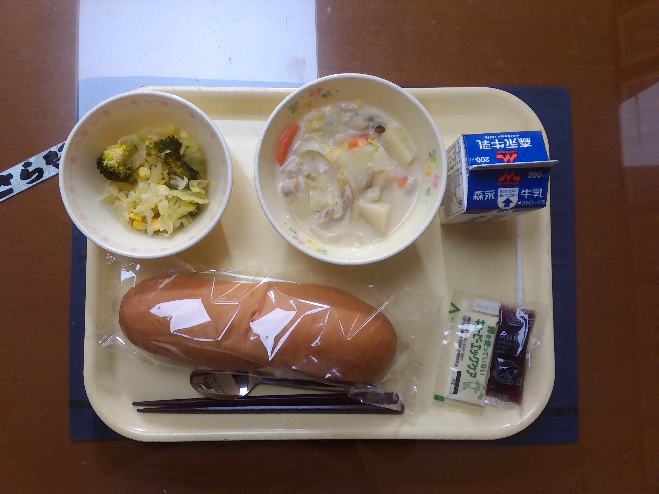今日の給食のメニューは、パン・牛乳・奈良の酒かすシチュー・ブロッコリーのサラダ・ブルーベリージャムでした。奈良県は、日本で初めて日本酒が造られたところです。お酒はお米から作られています。特に1月は、秋にとれたお米から作られたお酒が出回る時期で、酒かすも出回ります。酒かすは甘酒や奈良漬などにも使われます。今日は奈良市産の酒かすをシチューに入れました。酒かすは体を温めてくれるので、寒い冬にぴったりですね。ごちそうさまでした!